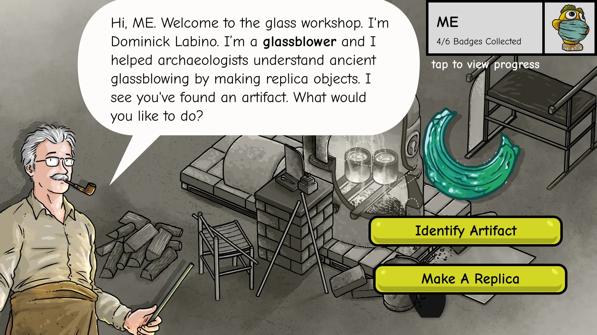 An interactive touchscreen and NFC-based game designed for the Corning Museum of Glass, created as an in-gallery experience alongside artifacts and exhibitions. The game invites children to explore how ancient glass was discovered, made, and studied through play, exploration, and physical–digital interaction.