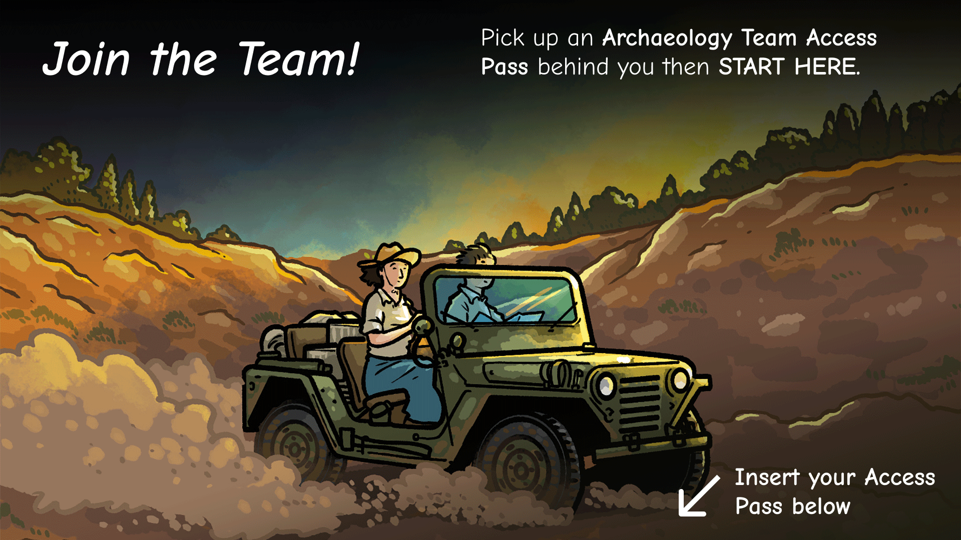 Dig Site — Entry station where visitors begin their journey by exploring a 3D model of the original Jalame excavation site.